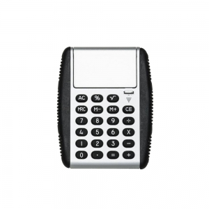 Calculadora plástica de 8 dígitos com bordas emborrachadas em relevo. Possui compartimento flexível, basta puxar “botão” para baixo que a tampa protetora irá levantar e servirá de apoio, acompanha uma bateria AG10.